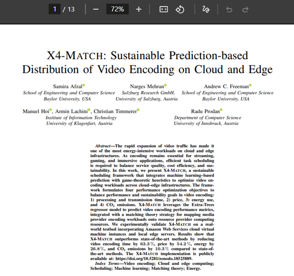 VE-Match: Video Encoding Matching-based Model for Cloud and Edge Computing Instances Samira Afzal, Narges Mehran, Sandro Linder, Christian Timmerer, Radu Prodan; 1st International ACM Green Multimedia Systems Workshop, MMSys, 2023, [Event ].
